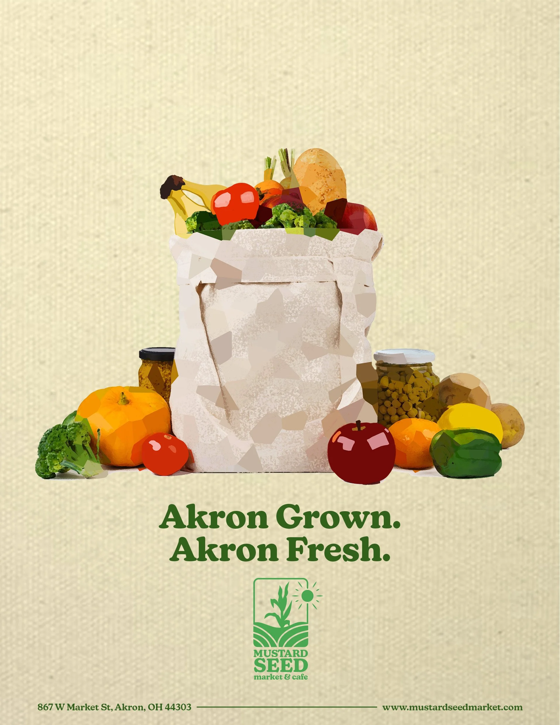 When creating a new brand identity for Akron’s own Mustard Seed Market & Cafe, I wanted to bring an emphasis on their support to local farms and focus on clean, fresh food for all of Akron to indulge in. With this I created a mark that is a sprawling sunlit field with a singular crop growing up the center, with the additional name at the bottom to complete the lockup.